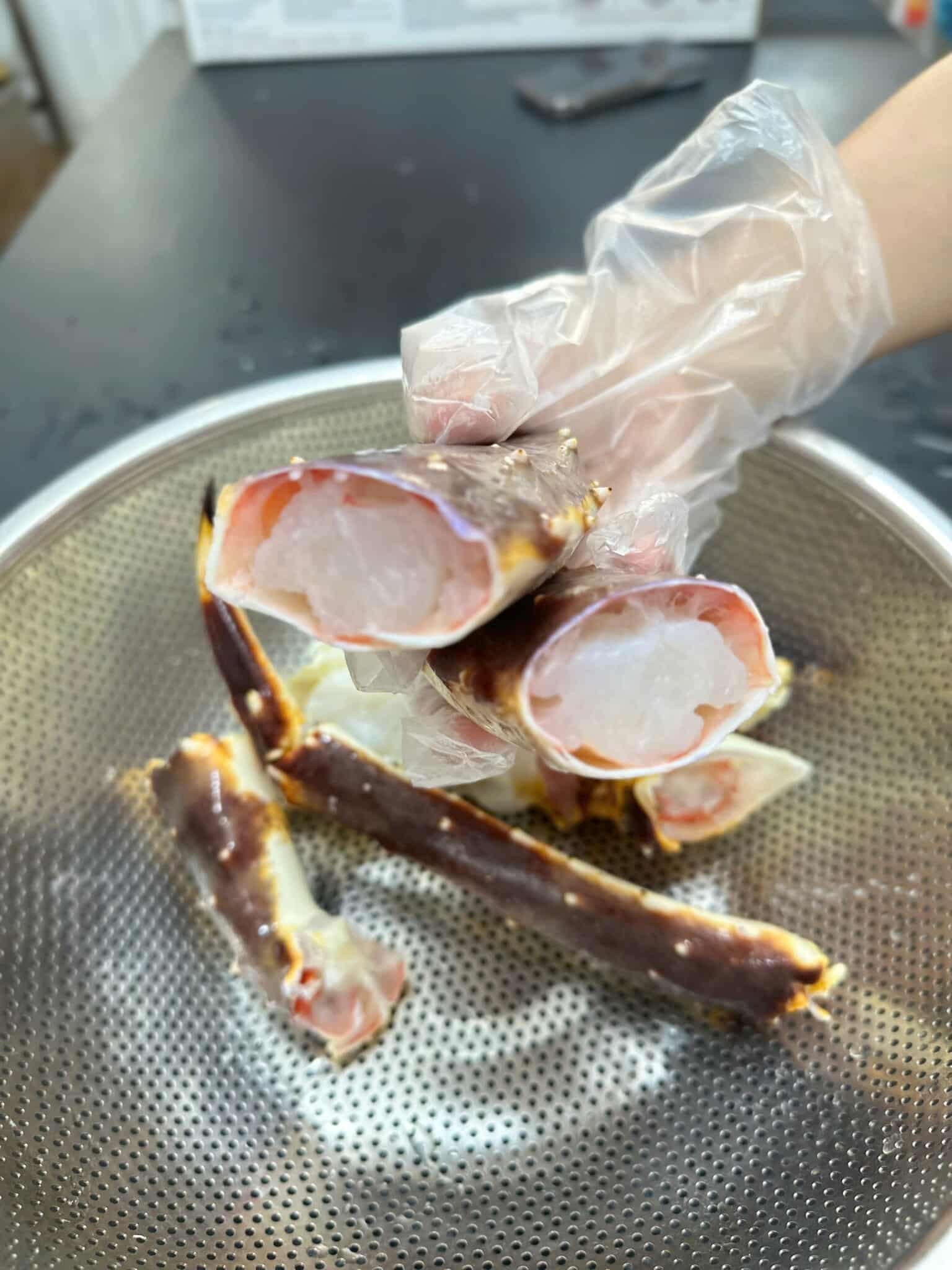 ✨ Size khổng lồ 1,3–2,5kg/cụm chân: Tương đương cua nguyên con nặng 2–5kg, phải mất 3–5 năm sinh trưởng mới đạt đến. Mỗi cụm chân chính là tinh hoa của “vua cua biển”, nơi tập trung hơn 80% lượng thịt.
