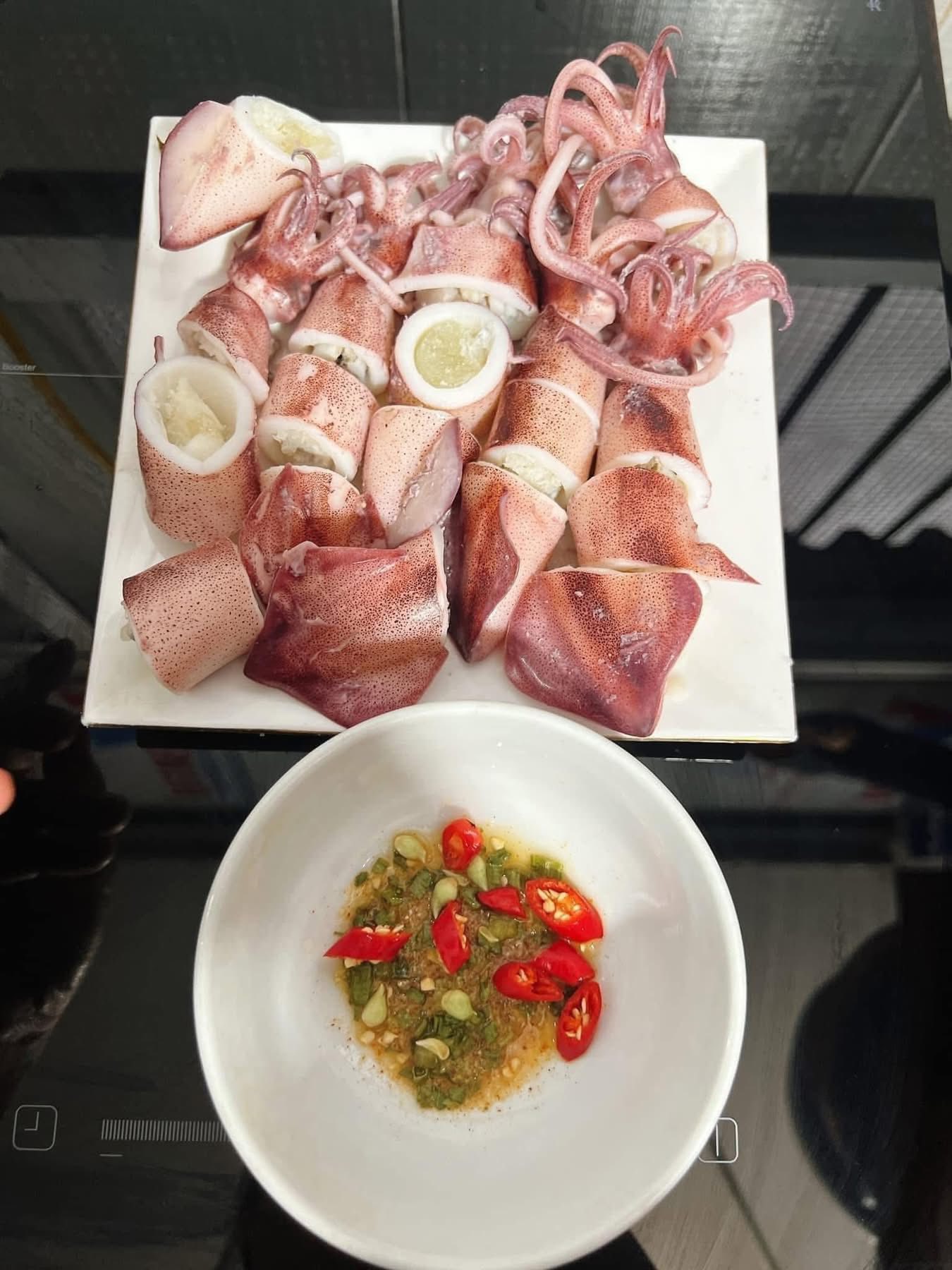 “Một đĩa mực trứng chiên vàng rụm, chấm với nước mắm tỏi ớt cay nhẹ – chỉ thế thôi cũng đủ khiến bữa cơm 20/10 trọn vị yêu thương.”