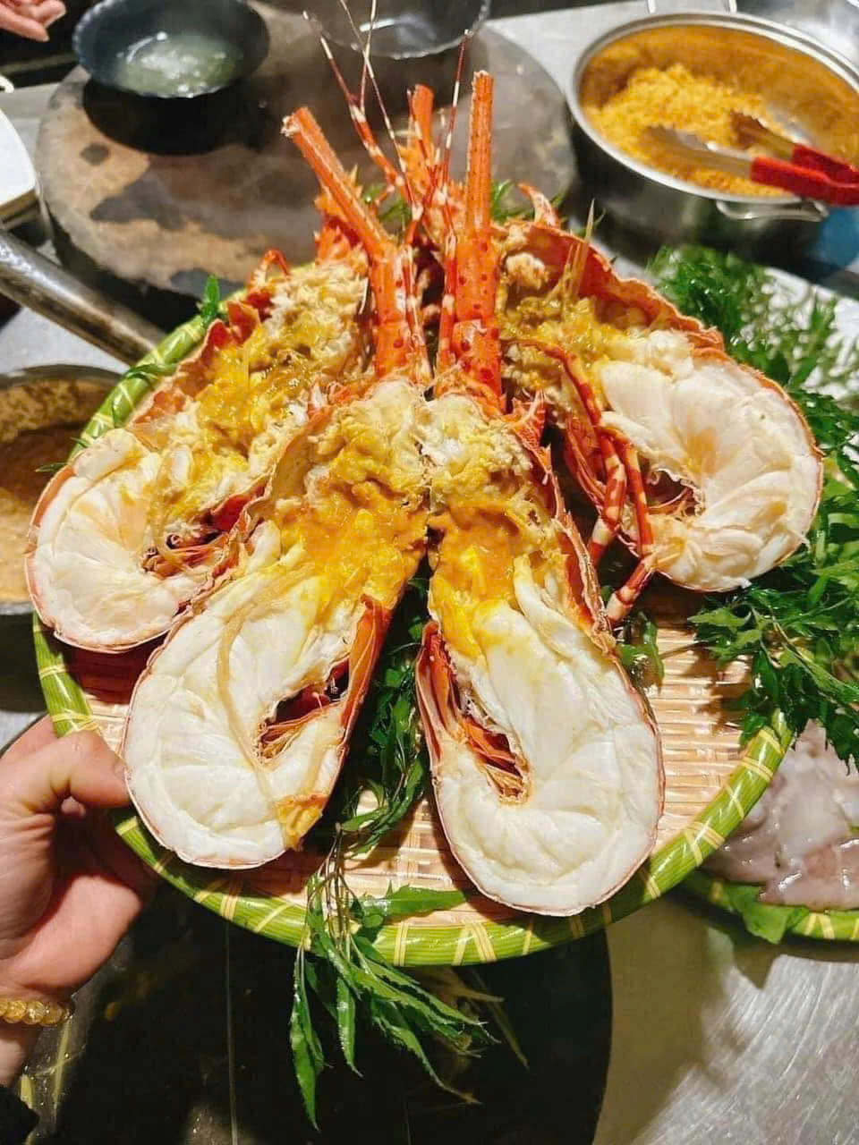 Nếu tôm hùm đỏ gợi lên sự quyền lực, thì tôm hùm xanh lại mang nét đẹp khác biệt – nhẹ nhàng, tự nhiên và đầy cuốn hút. Lớp vỏ xanh ngọc lấp lánh như nước biển sâu, khi hấp chín chuyển sang màu cam sậm rực rỡ, tạo nên vẻ ngoài tinh tế mà khó loại hải sản nào sánh kịp.